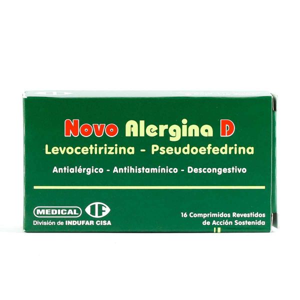 Novo Alergina D esta indicado para el tratamiento de la congestión nasal, estornudos, rinorrea, prurito nasal y ocular asociados con la rinitis alérgica estacional o perenne, coadyuvante en el tratamiento de procesos agudos como otitis media, sinusitis aguda o crónica y resfriado común.
